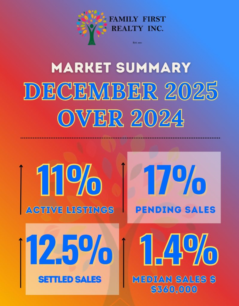 ● Active residential listings for December totaled 4,530, down from 5,178 during November, but up 11.25% from 4,072 in December 2024.